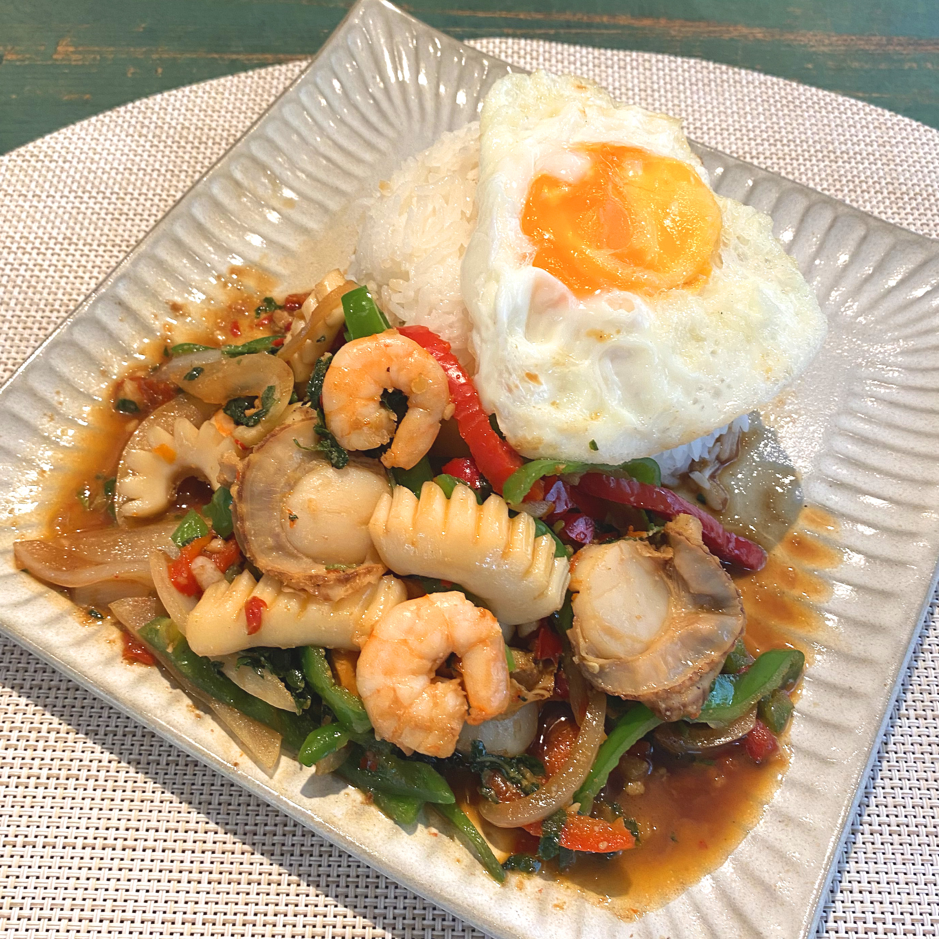ガパオタレー(シーフードのガパオ炒め ご飯・目玉焼き付き) |