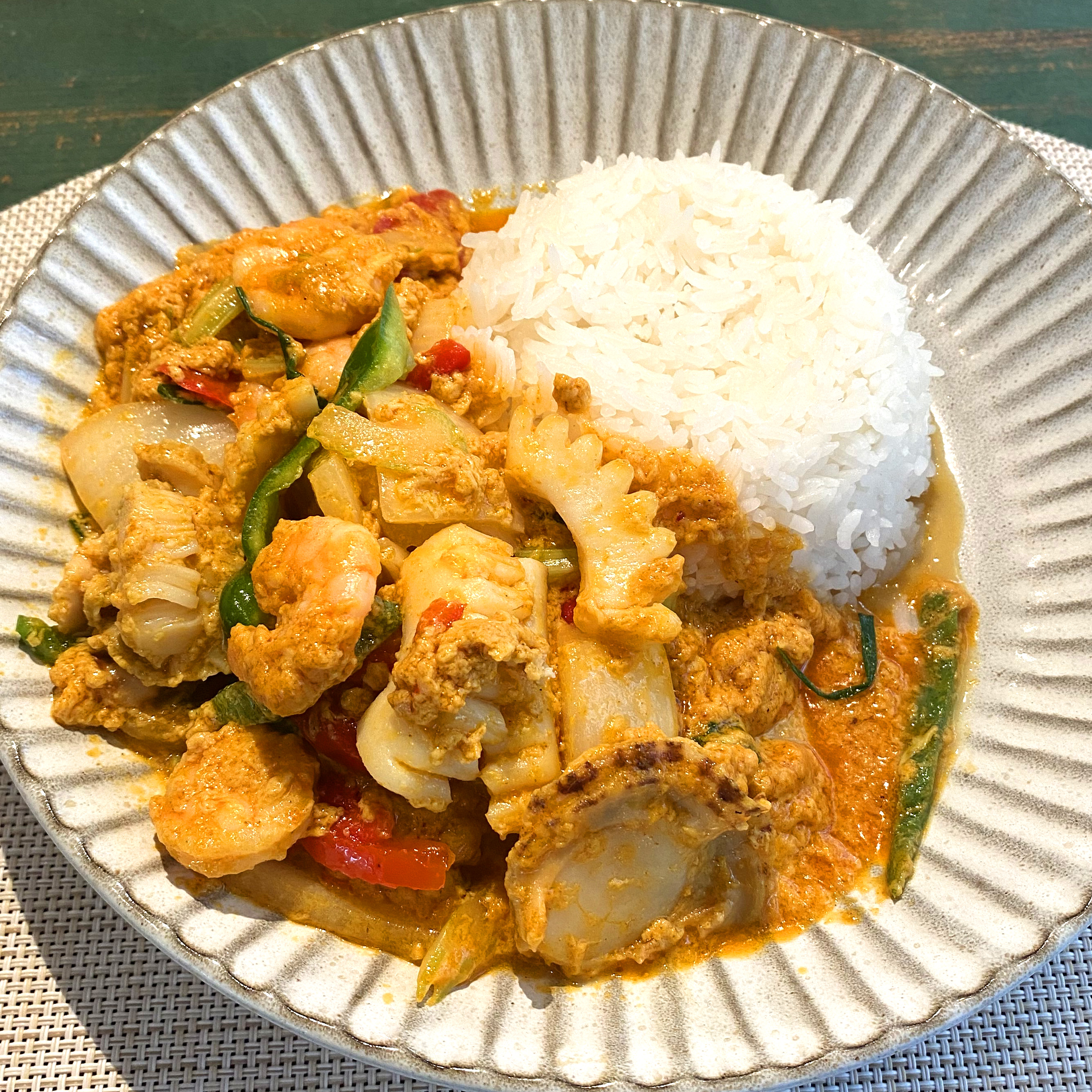 タレーパッポンカリー(シーフードと玉子のカレー炒め ご飯き付き) |